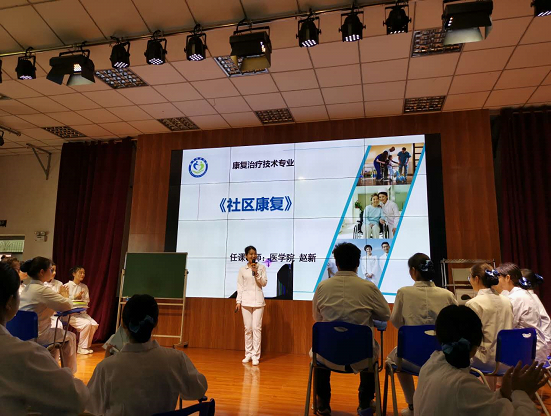 会议第一阶段,与会领导和教师观摩bw必威西汉姆联官方网站赵欣老师主讲的《颈椎病的健康教育》公开课。教务处长付晓东作了点评。
