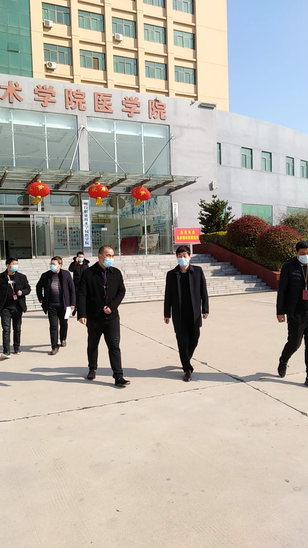 2020年3月4日上午,示范区新冠肺炎疫情联防联控领导组莅临文昌校区检查工作,bw必威西汉姆联官方网站党总支书记周文一、护理学院党总支书记李明臣、后勤处副处长闫彩亮等向检查组汇报工作。检查组查阅材料,实地察看后对文昌校区防疫工作表示满意。