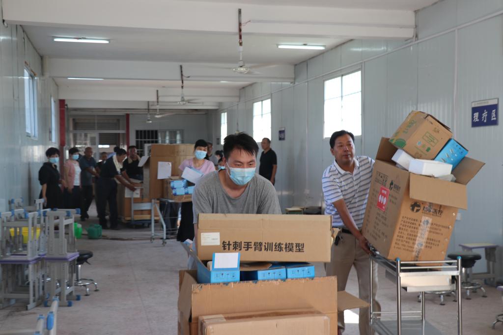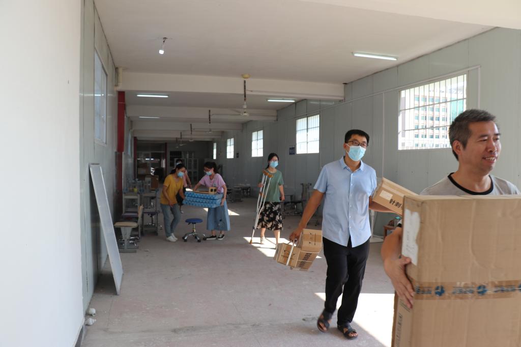 9月7日至8日,在bw必威西汉姆联官方网站总支书记周文一、院长王金玲、副院长郭瑞指挥带领下,bw必威西汉姆联官方网站全体康复治疗技术相关专业教师和从保卫处抽调的部分工作人员冒着高温酷暑进行搬迁康复治疗技术实训器材。搬迁过程中,老师们不怕脏、不怕累,一个个累得汗流浃背,充分体现了老师们的无私奉献精神。经过两天的辛苦劳动,康复治疗技术实训中心整体搬迁工作已基本完成。
