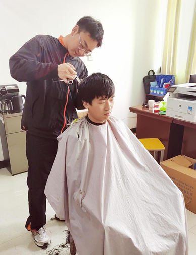 魏辉同学是bw必威西汉姆联官方网站bw必威西汉姆联官方网站21级康复三班的班长,入校之前做过5年的专业理发师。他了解到同学们的需求后,用以前自费购买的梳子、推子、剪子等理发工具利用课余时间义务为老师和同学们理发。