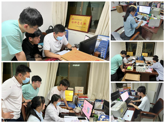 学生支部书记董云威、组织委员李莉莉老师带领入党积极分子徐道平、张刘浩、纪灵洋、李坤宇、魏敬等连夜制定消杀方案、制作消杀药剂。