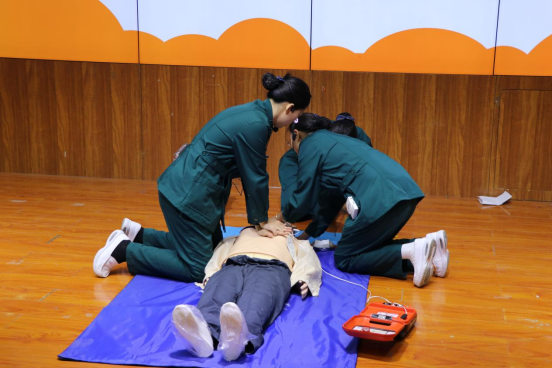 会上,参加河南省高等职业教育技能大赛急救技能赛项的彭盼盼、蒋晶晶、詹丹丹、杨秋月老师进行比赛总结汇报,分享比赛心得,并现场展示比赛项目。几位老师在时间紧迫、经验不足的情况下,研究比赛规程后,迅速投入紧张艰苦的训练之中,她们把此次比赛作为以赛促学、展现自我、全面提升的良好契机,最终荣获获省赛二等奖。
