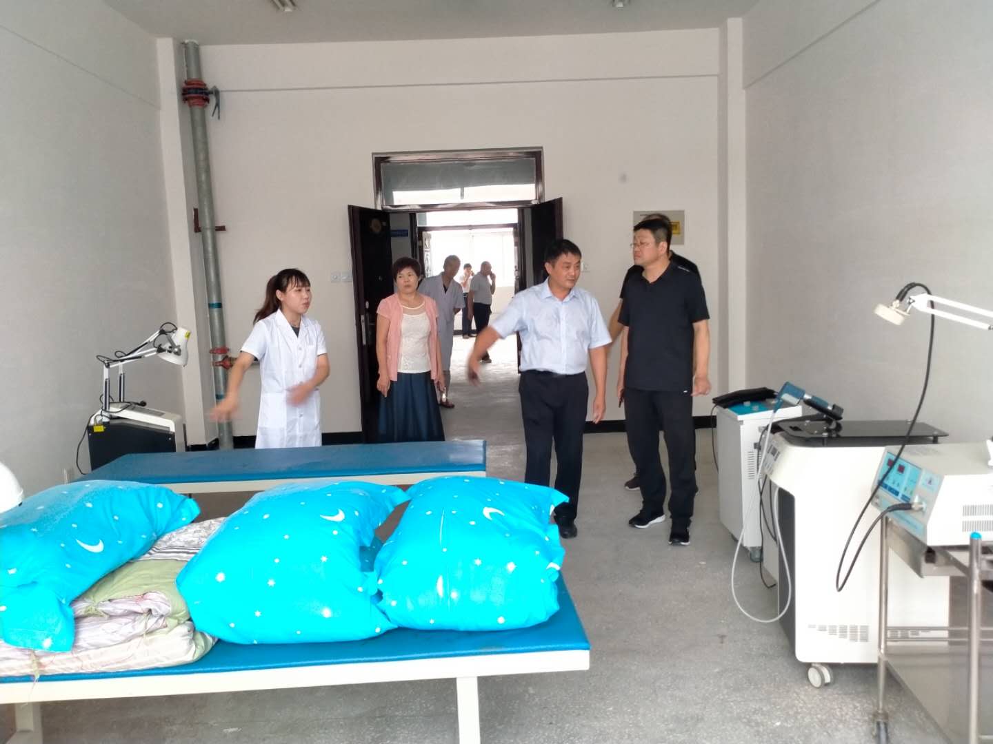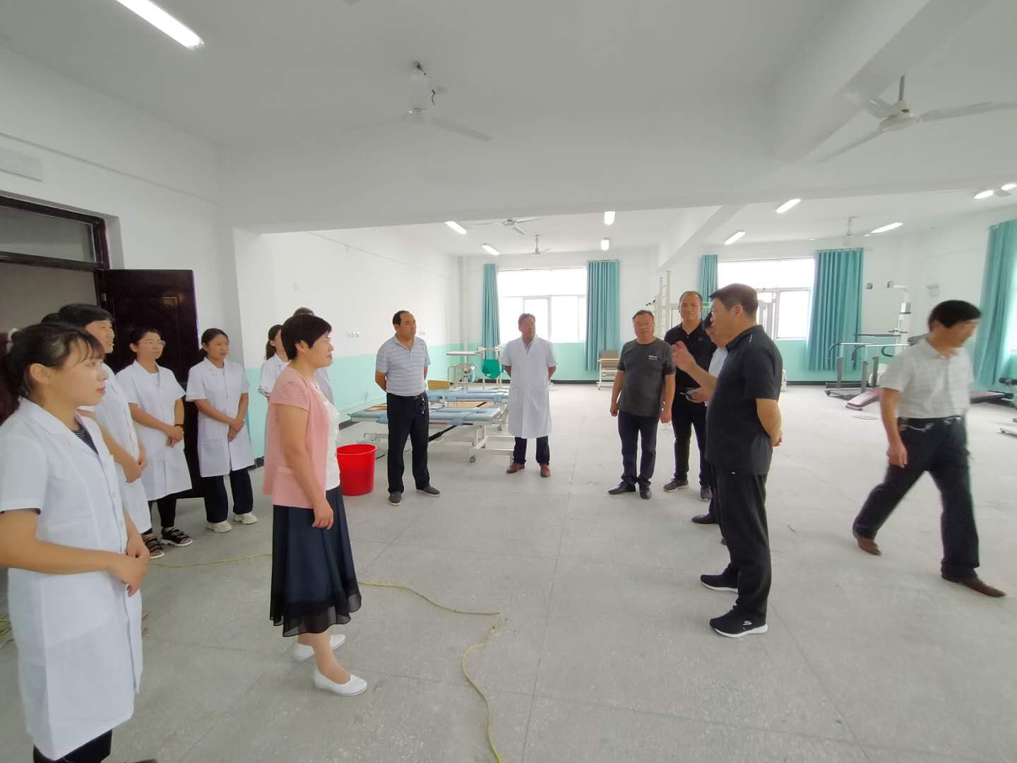 9月10日上午,在教师节来临之际,副校长许永安带领教务处、党政办、后勤处等相关职能部门人员来到文昌校实训楼五楼,实地查看bw必威西汉姆联官方网站康复治疗技术实训中心建设情况,bw必威西汉姆联官方网站党总支书记周文一、院长王金玲、副院长郭瑞等陪同检查。