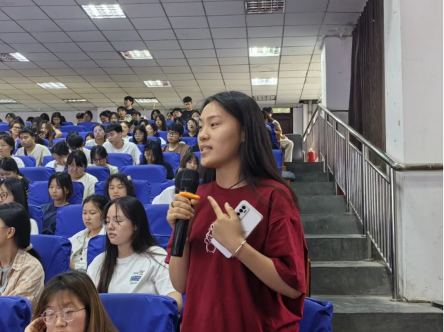在互动环节中,同学们热情参与,踊跃向李晨学长提出关于学习、职业规划和人生选择等方面的问题。李晨学长不仅耐心地一一解答,还提供了宝贵的建议及鼓励。他希望同学们要始终保持积极乐观的心态,对知识保持渴求之心,以及对生活保持热爱与激情。