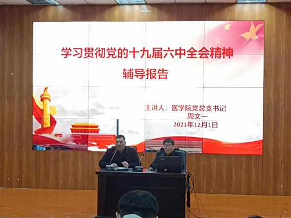 12月1日下午,bw必威西汉姆联官方网站党总支书记周文一在文昌校区报告厅为bw必威西汉姆联官方网站、护理学院全体教师作党的十九届六中全会精神主题报告。