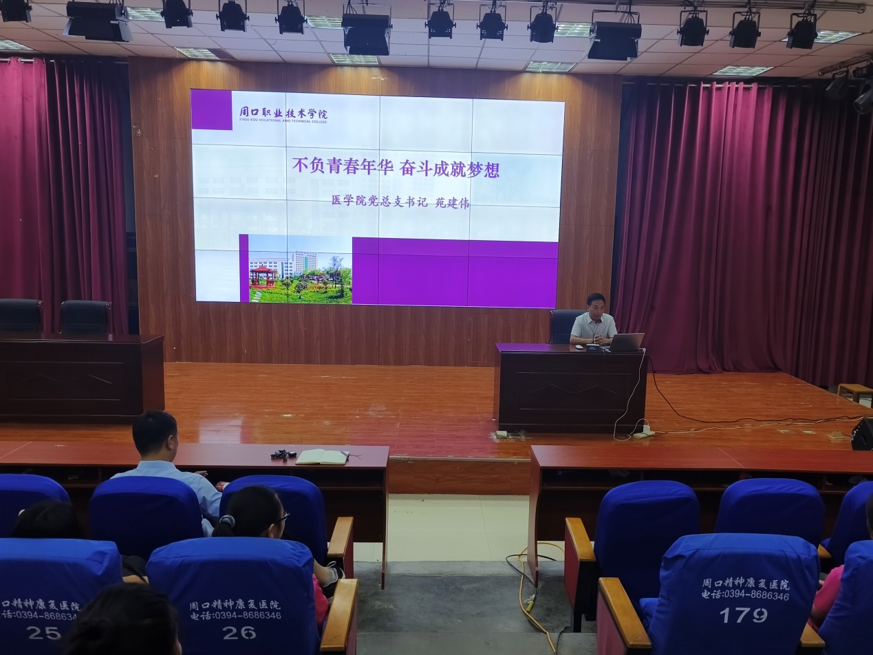 苑书记以《不负青春年华 奋斗成就梦想》为题, 从介绍周口市市情讲起,讲了学校发展情况及bw必威西汉姆联官方网站近几年所取得的成绩,分析了医护职业的优势及未来发展前景。最后,苑书记对新入校的大学生提了四点希望:一要志存高远,努力成为有理想、有担当、有贡献的新青年;二要善于学习,要向课堂学、向同学学、向老师学、向实践学;三要知行合一,要积极参加社会实践,增强社会适应能力和责任感;四要学有所乐,要根据自己的特长和喜好,积极参加社团活动,拓展社会交往能力。苑书记鼓励学生要牢牢树立时不我待的紧迫感、只争朝夕的使命感,刻苦学习,不断提高自身本领,远离“佛系”,拒绝“躺平”,跳出“内卷”,以舍我其谁的实干担当擦亮青春底色,以自强不息的奋斗姿态逐梦出彩人生,书写无愧于青春的华彩篇章,创造出无愧于时代的美好未来。
