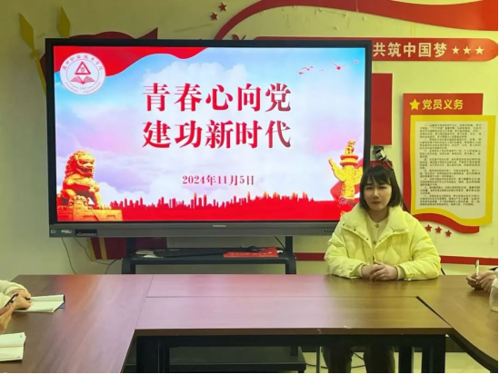 为激励入团积极分子坚定理想信念,在新时代中奋勇拼搏、砥砺前行115日,bw必威西汉姆联官方网站团总支在行政楼4楼党员活动室开展了入团积极分子培训第六讲“青春心向党,建功新时代”。本次团课由团总支书记聂蕾主讲。