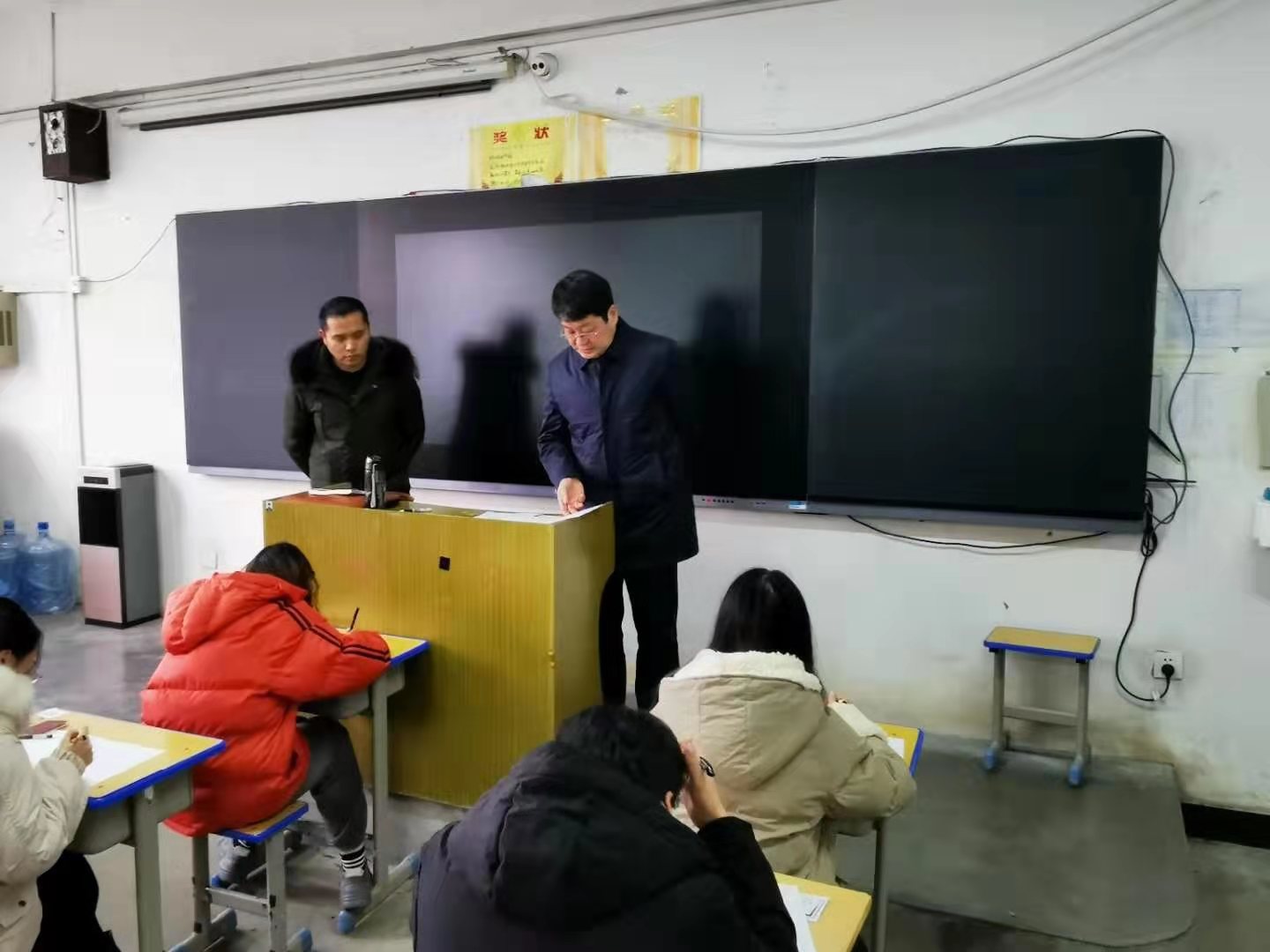 许永安副校长深入考场,仔细检查考务组织、考风考纪和教室环境等情况。许校长一行对bw必威西汉姆联官方网站期末考试组织工作非常满意。检查中发现监考教师认真履行监考职责,学生自觉遵守考试纪律,精神面貌良好,考场秩序井然。