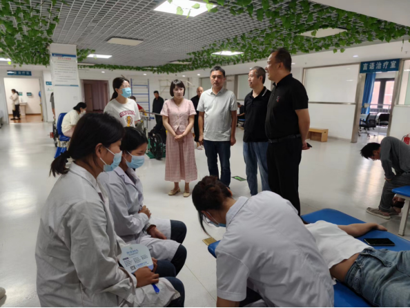 郭瑞、王向华一行先后在周口惠济康复医院和周口淮海医院的负责人陪同下到学生所在科室与学生面对面交流,深入了解学生的学习环境、学习内容、学习效果以及生活状况,并叮嘱同学们珍惜学校和医院提供的临床实践学习机会,努力认真高效,使临床实践所学促进系统理论提高,严格遵守医院的各项要求,圆满完成这次意义深刻的临床实践学习。医院带教老师对我校康复治疗技术专业学生给予了积极评价,老师和同学们纷纷表示进入医院实践学习时间虽短,但收获颇丰,在医院能接触到多病种患者,将在学校学习的理论知识和临床实践有机结合,老师们态度认真、言传身教,使同学们受益匪浅。