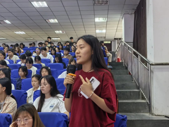 在互动环节,同学们热情参与,踊跃向李晨学长提出关于学习、职业规划和人生选择等方面问题。李晨学长不仅耐心地一一解答,还提供了宝贵的建议及鼓励。他希望同学们要始终保持积极乐观的心态,对知识保持渴求之心,以及对生活保持热爱与激情。