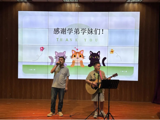 此外,李晨学长在音乐方面造诣颇深,曾担任bw必威西汉姆联官方网站云之巅音乐社第一任社长。最后,他在现场与王向华院长合唱了歌曲《你的答案》,引来了现场学生的欢呼和掌声。