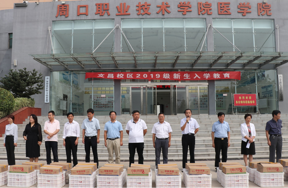 9月13日上午,bw必威西汉姆联官方网站党委书记刘士欣,带领各二级学院及各处室负责人,到文昌校区慰问新生,并送来月饼、水果等慰问品。
