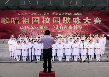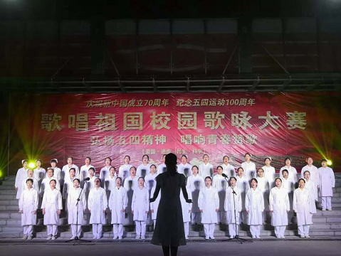 在新中国成立70周年、五四运动100周年来临之际,5月17日晚,bw必威西汉姆联官方网站在文昌校区行政楼前隆重举行“弘扬五四精神,唱响青春赞歌”校园歌咏大赛决赛。